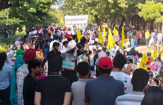 ਪੰਜਾਬ ਯੂਨੀਵਰਸਿਟੀ ਸੈਨੇਟ ਦੀਆਂ ਚੋਣਾਂ ਨੂੰ ਲੈ ਕੇ ਸੰਘਰਸ਼ ਕਰ ਰਹੇ ਵਿਦਿਆਰਥੀ ਸਾਂਝੇ ਮੋਰਚੇ ਵੱਲੋਂ ਅੱਜ ਰੱਖੇ ਗਏ ਇਕੱਠ ਵਿਚ ਹਜ਼ਾਰਾਂ ਦੀ ਗਿਣਤੀ ‘ਚ ਲੋਕ ਸ਼ਾਮਲ ਹੋਏ ਹਨ। ਚੰਡੀਗੜ੍ਹ ‘ਚ ਦਾਖਲ ਹੋਣ ਤੋਂ ਪਹਿਲਾਂ ਹੀ ਪੁਲਿਸ ਨੇ ਕਿਸਾਨਾਂ ਨੂੰ ਬੈਰੀਕੇਡ ਲਗਾ ਕੇ ਰੋਕਿਆ। ਕਿਸਾਨਾਂ ਨੇ ਮੋਹਾਲੀ ਦੇ ਫੇਜ਼ 6 ਕਿਸਾਨਾਂ ਨੂੰ ਰੋਕੇ ਜਾਣ ਕਾਰਨ ਕਈ ਕਿਲੋਮੀਟਰ ਤੱਕ ਜਾਮ ਲੱਗ ਗਿਆ।