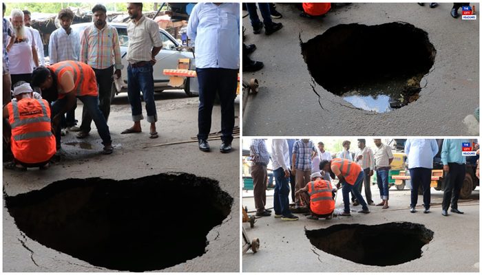 ਭਾਰੀ ਮੀਂਹ ਤੋਂ ਬਾਅਦ ਲੁਧਿਆਣਾ ਰੇਲਵੇ ਸਟੇਸ਼ਨ ਦੇ ਬਾਹਰ ਅਚਾਨਕ ਧੱਸੀ ਸੜਕ