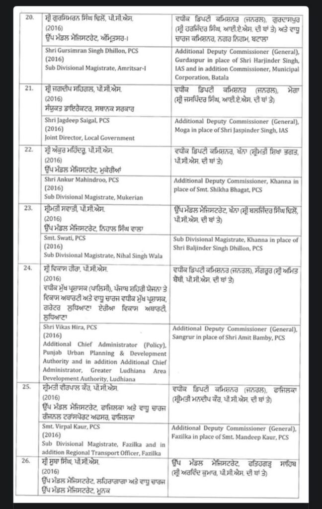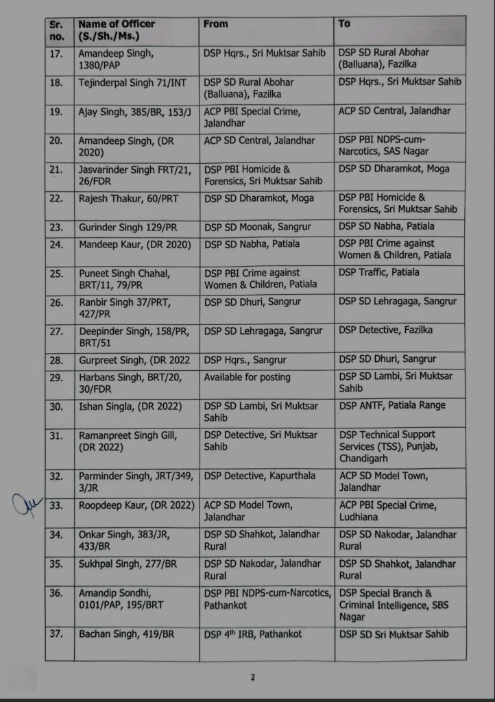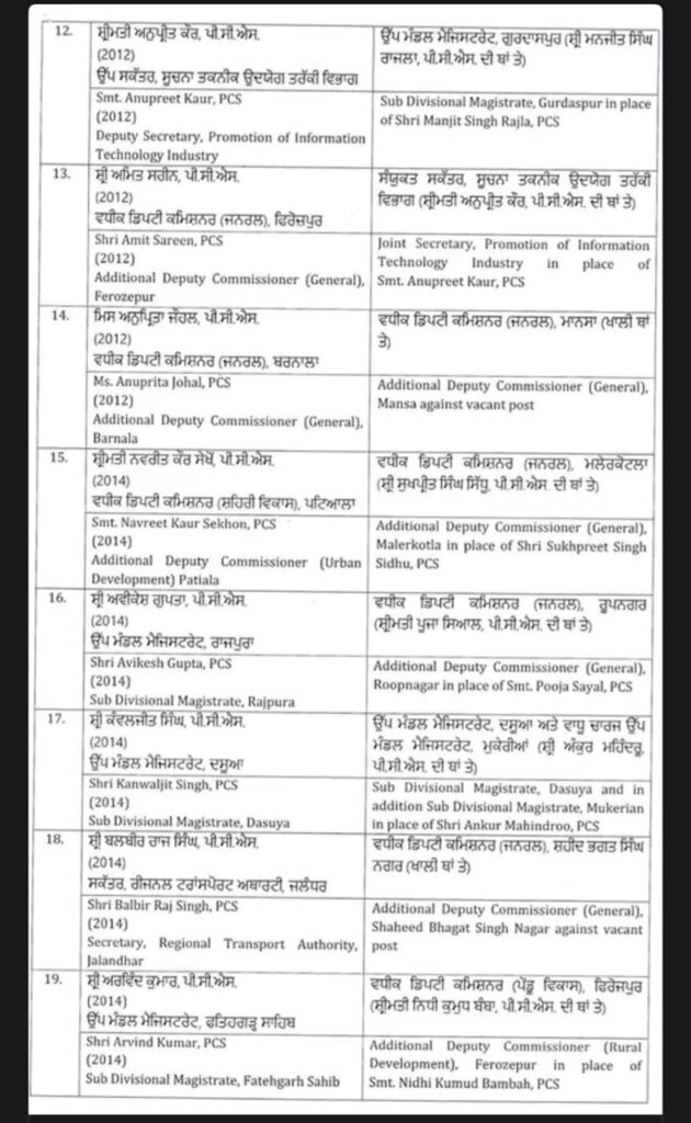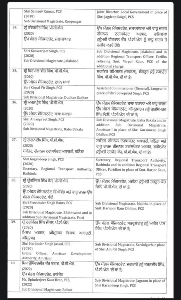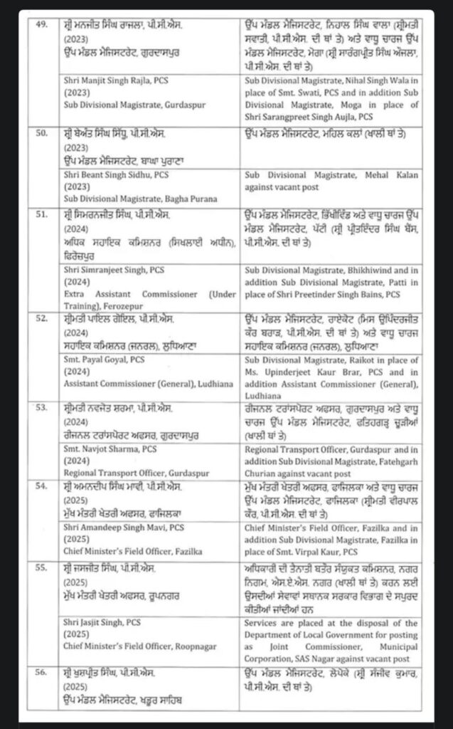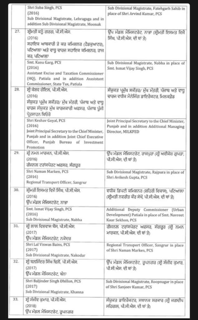 ਕ੍ਰਮਵਾਰ ਤਬਦੀਲ ਕੀਤੇ ਗਏ ਅਧਿਕਾਰੀਆਂ ਦੀ ਸੂਚੀ ਵੇਖੋ…