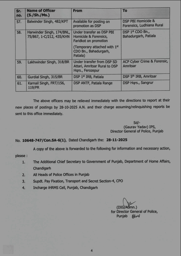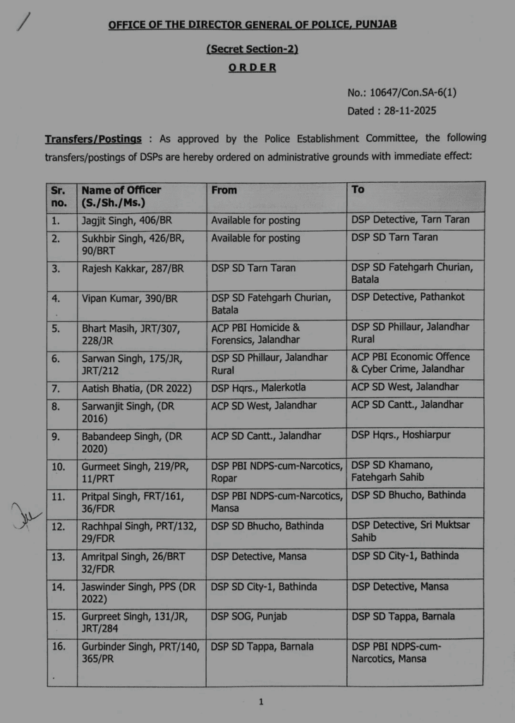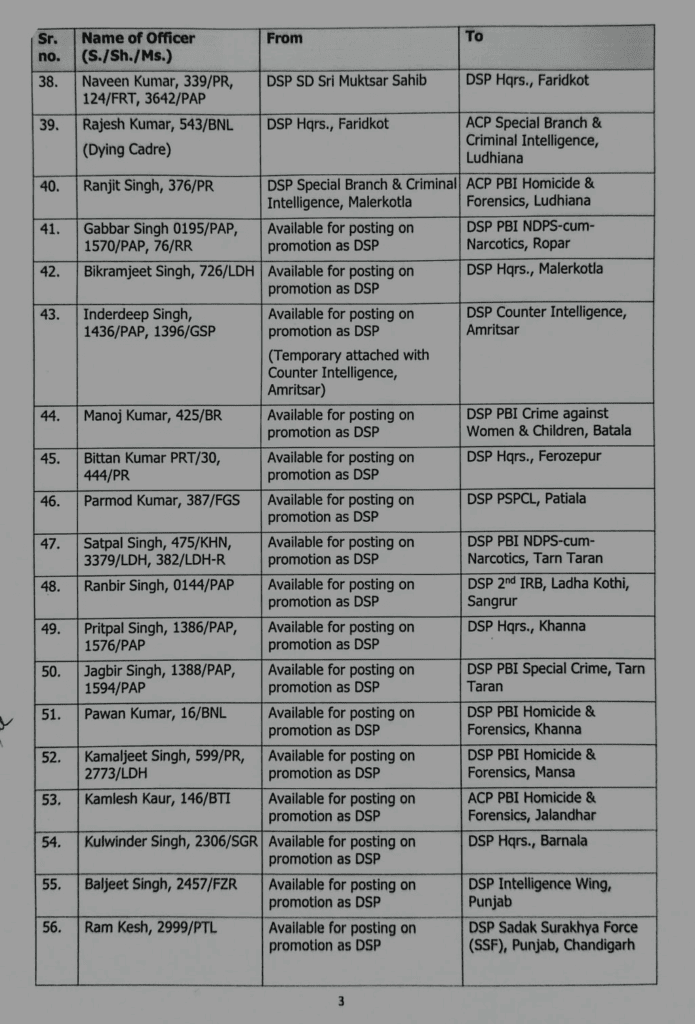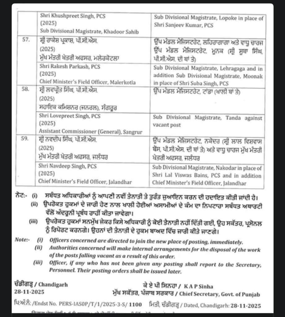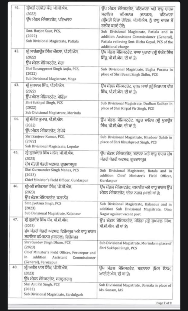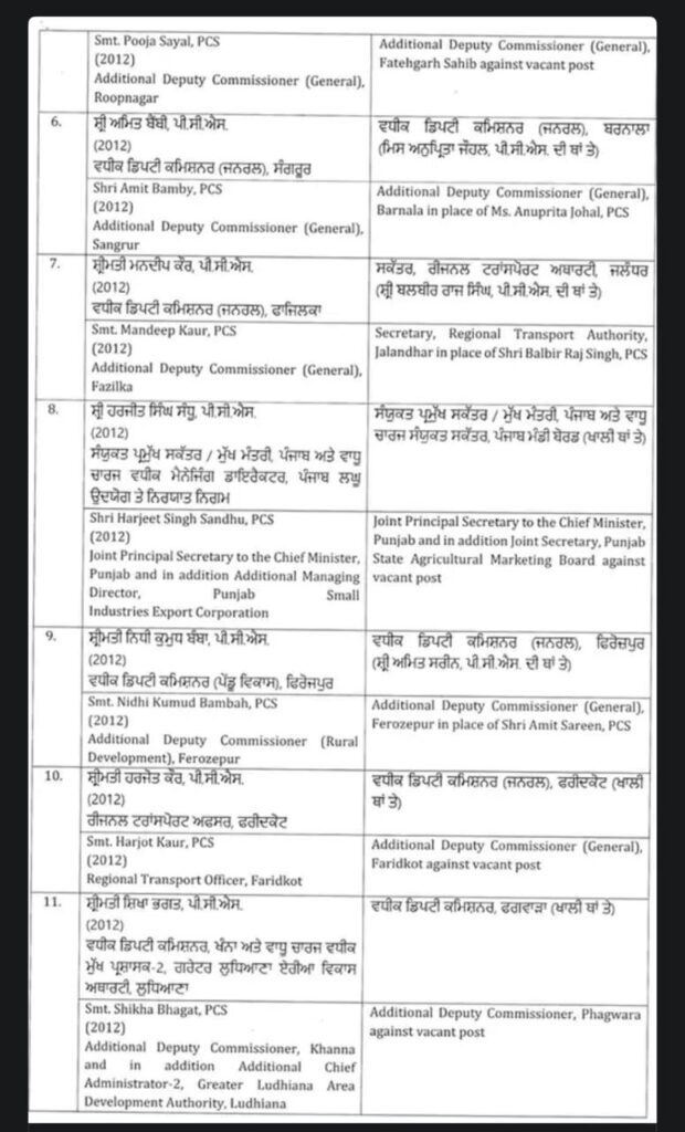 ਕ੍ਰਮਵਾਰ ਤਬਦੀਲ ਕੀਤੇ ਗਏ ਅਧਿਕਾਰੀਆਂ ਦੀ ਸੂਚੀ ਵੇਖੋ…