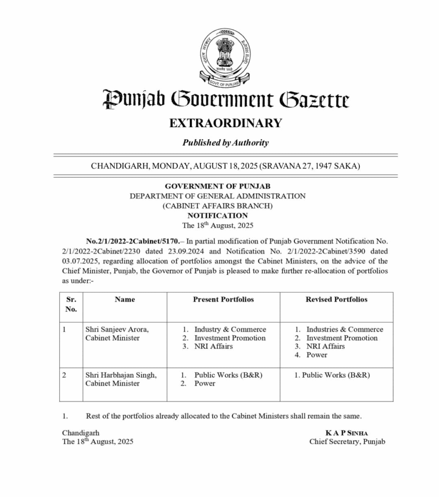 PunjabTop FourTop News ਵੱਡੀ ਖ਼ਬਰ : ਹਰਭਜਨ ਸਿੰਘ ETO ਤੋਂ ਬਿਜਲੀ ਮਹਿਕਮਾ ਵਾਪਸ ਲੈਣ ਤੋਂ ਬਾਅਦ ਪੰਜਾਬ ਨੂੰ ਮਿਲਿਆ ਨਵਾਂ ਬਿਜਲੀ ਮੰਤਰੀ By The City Headlines August 18, 2025 0 172 Share FacebookTwitterWhatsAppTelegramCopy URL Must read ਰਾਗੁ ਸੂਹੀ ਮਹਲਾ ੪ ਛੰਤ ਘਰੁ ੧ ੴ ਸਤਿਗੁਰ ਪ੍ਰਸਾਦਿ ॥ ਸਤਿਗੁਰੁ ਪੁਰਖੁ ਮਿਲਾਇ ਅਵਗਣ ਵਿਕਣਾ ਗੁਣ ਰਵਾ ਬਲਿ ਰਾਮ ਜੀਉ ॥ October 23, 2025 ਤਰਨਤਾਰਨ ਜ਼ਿਮਨੀ ਚੋਣ: ਨਾਮਜ਼ਦਗੀ ਪੱਤਰਾਂ ਦੀ ਪੜਤਾਲ ਤੋਂ ਬਾਅਦ 6 ਉਮੀਦਵਾਰਾਂ ਦੇ ਕਾਗਜ਼ ਰੱਦ October 22, 2025 SHO ਭੂਸ਼ਣ ਕੁਮਾਰ ਵਿਰੁੱਧ ਵੱਡੀ ਕਾਰਵਾਈ : ਮਹਿਲਾ ਕਮਿਸ਼ਨ ਨੇ ਜਾਰੀ ਕੀਤੇ ਸਖ਼ਤ ਨਿਰਦੇਸ਼; ਪੜ੍ਹੋ ਪੂਰਾ ਮਾਮਲਾ October 22, 2025 ਪੰਜਾਬ ਸਰਕਾਰ ਨੇ ਇਨ੍ਹਾਂ ਅਧਿਕਾਰੀਆਂ ਨੂੰ ਦਿੱਤੀ ਤਰੱਕੀ, ਪੜ੍ਹੋ ਸੂਚੀ October 22, 2025 The City Headlines ਪੰਜਾਬ ਕੈਬਨਿਟ ਵਿਚ ਵੱਡਾ ਫੇਰਬਦਲ ਕੀਤਾ ਗਿਆ ਹੈ। ਹਰਭਜਨ ਸਿੰਘ ਈ ਟੀ ਓ ਤੋਂ ਬਿਜਲੀ ਮਹਿਕਮਾ ਵਾਪਸ ਲੈ ਕੇ ਸੰਜੀਵ ਅਰੋੜਾ ਨੂੰ ਸੂਬੇ ਦਾ ਨਵਾਂ ਬਿਜਲੀ ਮੰਤਰੀ ਬਣਾ ਦਿੱਤਾ ਹੈ। ਹੁਣ ਹਰਭਜਨ ਸਿੰਘ ਈਟੀਓ ਕੋਲ ਸਿਰਫ਼ ਲੋਕ ਨਿਰਮਾਣ ਵਿਭਾਗ (PWD) ਹੈ। TagsAam Aadmi PartyBhagwant MannBreaking news Punjablatest newsMP sanjeev AroraPunjabPunjab newsthecityheadlines Share FacebookTwitterWhatsAppTelegramCopy URL Previous articleਪੁੱਤ ਮੂਸੇਵਾਲਾ ਨੂੰ ਯਾਦ ਕਰਦਿਆਂ ਮਾਤਾ ਚਰਨ ਕੌਰ ਨੇ ਸਾਂਝੀ ਕੀਤੀ ਭਾਵੁਕ ਪੋਸਟ, ਲਿਖਿਆ . . .Next articleਸਲੋਕੁ ਮਃ ੩ ॥ ਪੜਣਾ ਗੁੜਣਾ ਸੰਸਾਰ ਕੀ ਕਾਰ ਹੈ ਅੰਦਰਿ ਤ੍ਰਿਸਨਾ ਵਿਕਾਰੁ ॥ - Advertisement - More articles ਤਰਨਤਾਰਨ ਜ਼ਿਮਨੀ ਚੋਣ: ਨਾਮਜ਼ਦਗੀ ਪੱਤਰਾਂ ਦੀ ਪੜਤਾਲ ਤੋਂ ਬਾਅਦ 6 ਉਮੀਦਵਾਰਾਂ ਦੇ ਕਾਗਜ਼ ਰੱਦ October 22, 2025 SHO ਭੂਸ਼ਣ ਕੁਮਾਰ ਵਿਰੁੱਧ ਵੱਡੀ ਕਾਰਵਾਈ : ਮਹਿਲਾ ਕਮਿਸ਼ਨ ਨੇ ਜਾਰੀ ਕੀਤੇ ਸਖ਼ਤ ਨਿਰਦੇਸ਼; ਪੜ੍ਹੋ ਪੂਰਾ ਮਾਮਲਾ October 22, 2025 ਪੰਜਾਬ ਸਰਕਾਰ ਨੇ ਇਨ੍ਹਾਂ ਅਧਿਕਾਰੀਆਂ ਨੂੰ ਦਿੱਤੀ ਤਰੱਕੀ, ਪੜ੍ਹੋ ਸੂਚੀ October 22, 2025 LEAVE A REPLY Cancel reply Comment: Please enter your comment! Name:* Please enter your name here Email:* You have entered an incorrect email address! Please enter your email address here Website: Save my name, email, and website in this browser for the next time I comment. - Advertisement - Latest article ਰਾਗੁ ਸੂਹੀ ਮਹਲਾ ੪ ਛੰਤ ਘਰੁ ੧ ੴ ਸਤਿਗੁਰ ਪ੍ਰਸਾਦਿ ॥ ਸਤਿਗੁਰੁ ਪੁਰਖੁ ਮਿਲਾਇ ਅਵਗਣ ਵਿਕਣਾ ਗੁਣ ਰਵਾ ਬਲਿ ਰਾਮ ਜੀਉ ॥ October 23, 2025 ਤਰਨਤਾਰਨ ਜ਼ਿਮਨੀ ਚੋਣ: ਨਾਮਜ਼ਦਗੀ ਪੱਤਰਾਂ ਦੀ ਪੜਤਾਲ ਤੋਂ ਬਾਅਦ 6 ਉਮੀਦਵਾਰਾਂ ਦੇ ਕਾਗਜ਼ ਰੱਦ October 22, 2025 SHO ਭੂਸ਼ਣ ਕੁਮਾਰ ਵਿਰੁੱਧ ਵੱਡੀ ਕਾਰਵਾਈ : ਮਹਿਲਾ ਕਮਿਸ਼ਨ ਨੇ ਜਾਰੀ ਕੀਤੇ ਸਖ਼ਤ ਨਿਰਦੇਸ਼; ਪੜ੍ਹੋ ਪੂਰਾ ਮਾਮਲਾ October 22, 2025 ਪੰਜਾਬ ਸਰਕਾਰ ਨੇ ਇਨ੍ਹਾਂ ਅਧਿਕਾਰੀਆਂ ਨੂੰ ਦਿੱਤੀ ਤਰੱਕੀ, ਪੜ੍ਹੋ ਸੂਚੀ October 22, 2025 ਪੰਜਾਬ ਦੇ ਇਸ ਪਿੰਡ ‘ਚ Mobile Network ਨਾ ਆਉਣ ‘ਤੇ ਮਹਿਲਾ ਸਰਪੰਚ ਨੇ ਲਗਵਾਇਆ ਮੁਫ਼ਤ WiFi, ਕੰਧਾਂ ‘ਤੇ ਲਿਖੇ Password October 22, 2025
