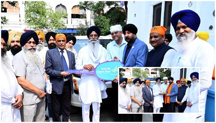 ਅੰਮ੍ਰਿਤਸਰ : ਸੱਚਖੰਡ ਸ੍ਰੀ ਹਰਿਮੰਦਰ ਸਾਹਿਬ ਵਿਖੇ ਸੰਗਤ ਦੀ ਸਹੂਲਤ ਲਈ ਕੈਨੇਰਾ ਬੈਂਕ ਵੱਲੋਂ ਕਾਰਪੋਰੇਟ ਸਮਾਜਿਕ ਜਿੰੰਮੇਵਾਰੀ (ਸੀਐੱਸਆਰ) ਪ੍ਰੋਗਰਾਮ ਤਹਿਤ ਅੱਜ ਇੱਕ ਐਂਬੂਲੈਂਸ ਦੀਆਂ ਚਾਬੀਆਂ ਸ਼੍ਰੋਮਣੀ ਗੁਰਦੁਆਰਾ ਪ੍ਰਬੰਧਕ ਕਮੇਟੀ ਦੇ ਪ੍ਰਧਾਨ ਐਡਵੋਕੇਟ ਹਰਜਿੰਦਰ ਸਿੰਘ ਧਾਮੀ ਨੂੰ ਸੌਂਪੀਆਂ ਗਈਆਂ।