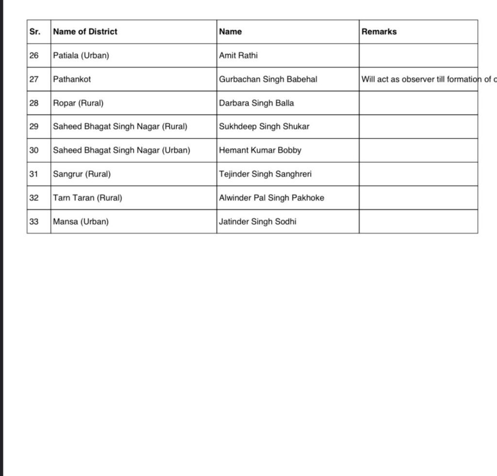 ਸ਼੍ਰੋਮਣੀ ਅਕਾਲੀ ਦਲ ਨੇ 33 ਜਿਲ੍ਹਾ ਪ੍ਰਧਾਨਾਂ ਦਾ ਕੀਤਾ ਐਲਾਨ ਕੀਤਾ ਹੈ। ਸੀਨੀਅਰ ਆਗੂ ਡਾ. ਦਲਜੀਤ ਚੀਮਾ ਨੇ ਇਸ ਦੀ ਸੂਚੀ ਜਾਰੀ ਕੀਤੀ ਹੈ। ਇਸ ਦੇ ਨਾਲ ਹੀ ਸ਼੍ਰੋਮਣੀ ਅਕਾਲੀ ਦਲ ਦੇ ਪ੍ਰਧਾਨ ਸੁਖਬੀਰ ਸਿੰਘ ਬਾਦਲ ਨੇ ਲੁਧਿਆਣਾ ਤੋਂ ਉੱਘੇ ਵਕੀਲ ਅਤੇ ਸੀਨੀਅਰ ਅਕਾਲੀ ਆਗੂ ਹਰੀਸ਼ ਰਾਏ ਢਾਂਡਾ ਤੇ ਨੌਜਵਾਨ ਅਕਾਲੀ ਆਗੂ ਅਤੇ ਸ਼੍ਰੋਮਣੀ ਕਮੇਟੀ ਦੇ ਮੈਂਬਰ ਅਜਨਾਲਾ ਤੋਂ ਜੋਧ ਸਿੰਘ ਸਮਰਾ ਨੂੰ ਪਾਰਟੀ ਦੀ ਕੋਰ ਕਮੇਟੀ ‘ਚ ਸ਼ਾਮਲ ਕੀਤਾ ਹੈ। ਇਹ ਜਾਣਕਾਰੀ ਵੀ ਡਾ. ਦਲਜੀਤ ਚੀਮਾ ਨੇ ਟਵੀਟ ਕਰਕੇ ਦਿੱਤੀ। ਜ਼ਿਲ੍ਹਾ ਪ੍ਰਧਾਨਾਂ ਦੇ ਨਾਵਾਂ ਦੀ ਲਿਸਟ ਹੇਠ ਦਿੱਤੇ ਮੁਤਾਬਕ ਹੈ-